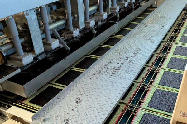 液体に近かった海苔が、型に流し込まれ、均一に広がり、少しずつ「一枚の板」になっていく。