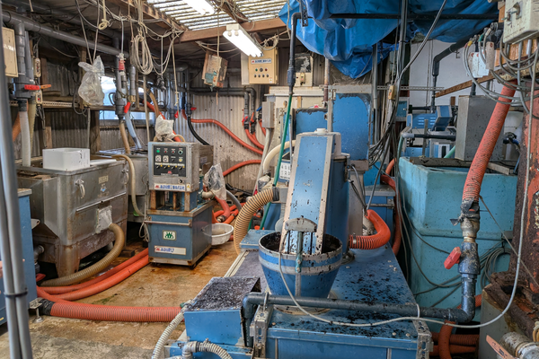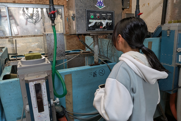 洗浄、攪拌、選別、成形。大きな機械が音を立てて動き続けていますが、決して「機械任せ」ではありません。