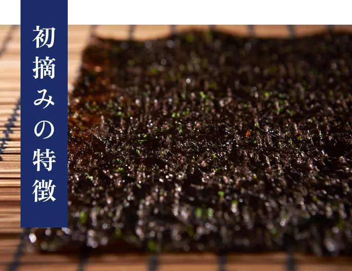 初摘み海苔は一年間で収穫される海苔のうち、わずか約3%しか取れない非常に希少なもので、特別な価値があります。海苔の世界では、初摘み海苔は格別とされ、それ以外の海苔とは一線を画すものとして扱われます。